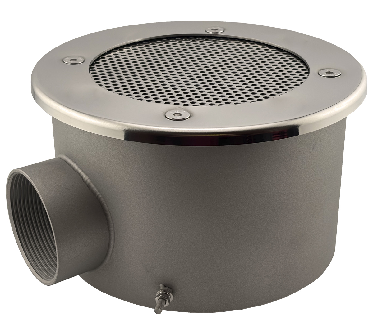 Слив имеет боковое подключение для подсоединения трубопровода. Если в вашем случае более удобен нижний подвод воды, вы можете рассмотреть этот водозабор с сетчатой крышкой в качестве альтернативы, он имеет аналогичное подсоединение – 2" внутр. резьба и диаметр закладной части.