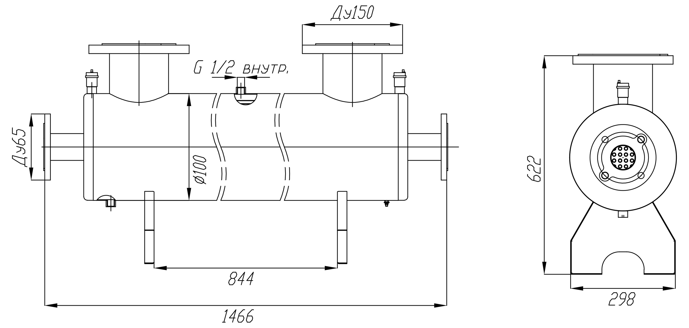 Данная модель имеет приваренные опоры и предназначена для напольного размещения и эксплуатации в горизонтальном положении.