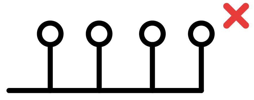 Если используется параллельное подключение, рекомендуем в конце магистрали предусмотреть небольшой участок трубы и заглушку на конце трубопровода – это обеспечит равномерное распределение потока и одинаковый напор воды во всех форсунках.